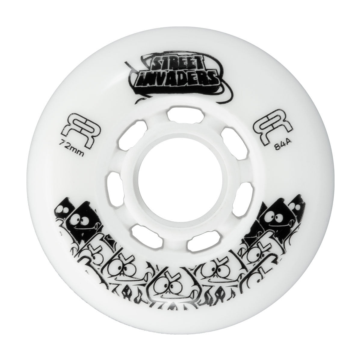 Black, Blue, Green, Grey, Orange, Purple, Red, White, Yellow. Full Round profile. The STREET INVADERS wheels are the second generation of this mythical wheel, with a better urethane for better performances 72mm, 76mm, 80mm and 84mm x 84a Hardness. Black, Blue, Green, Grey, Orange, Purple, Red, White, Yellow, Pink Full Round...