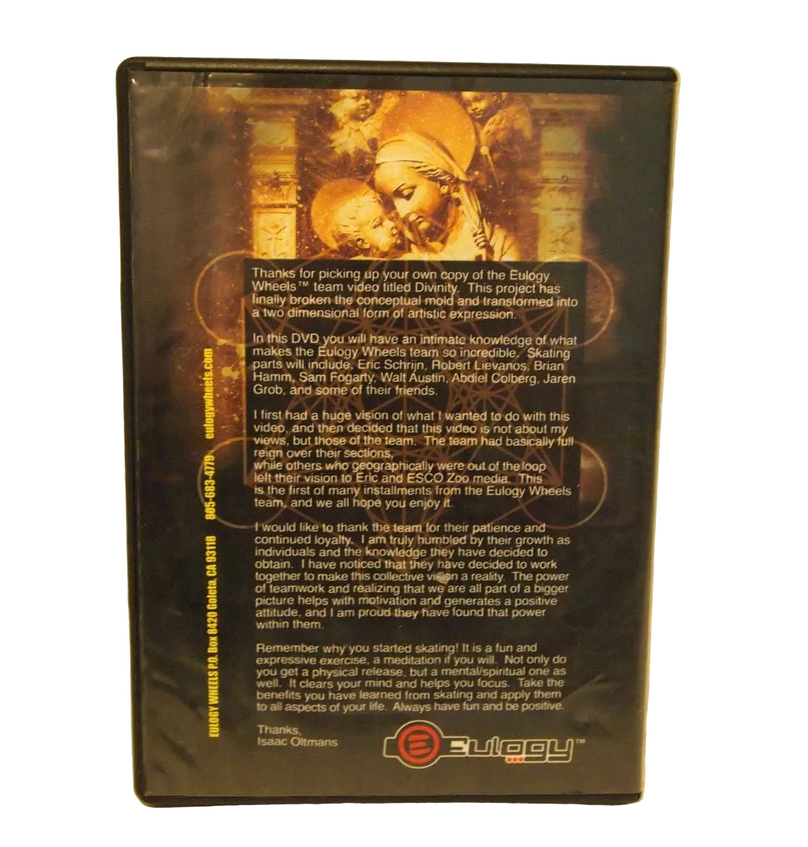 Eulogy - Divinity DVD. This is a collectors item! Released in 2004. Created by Isaac Oltmans Starring: Eric Schrijn Robert Lievanos Sam Fogarty Abdiel Colberg Jaren Grob And many more Important: The DVD's have been used before...
